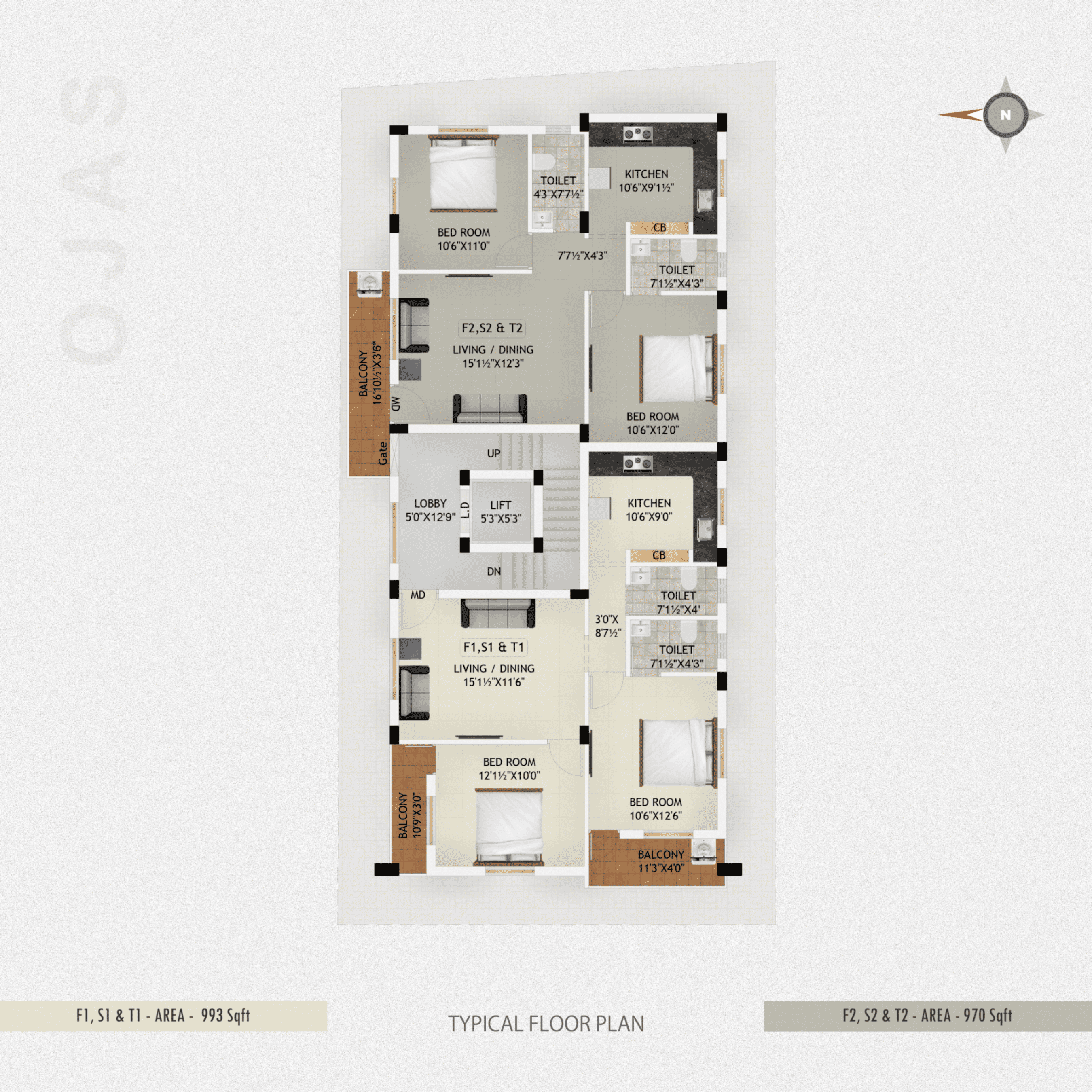 Structure: R.C.C. framed structure with 9" & 4.5" thick brick walls.Flooring: Joint free vitrifie...
